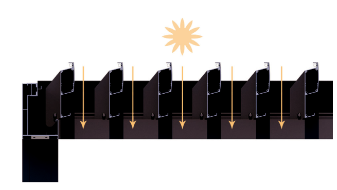 Maximum louver’s opening, that allows maximum use of sunlight even in sunset.